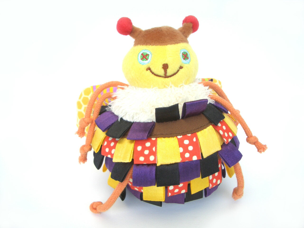 Bit'z タグハニーボーイ 丸々とした形が愛らしいオモチャ。 バックに付いた羽は取り外しが可能で、まだ起き上がれないお子様にラトルとしても使えます! お部屋のインテリアとしてもGOODなアイテムです♪ 対象年齢 3歳以上 素材 綿・ポリエステル サイズ 高さ約15cm