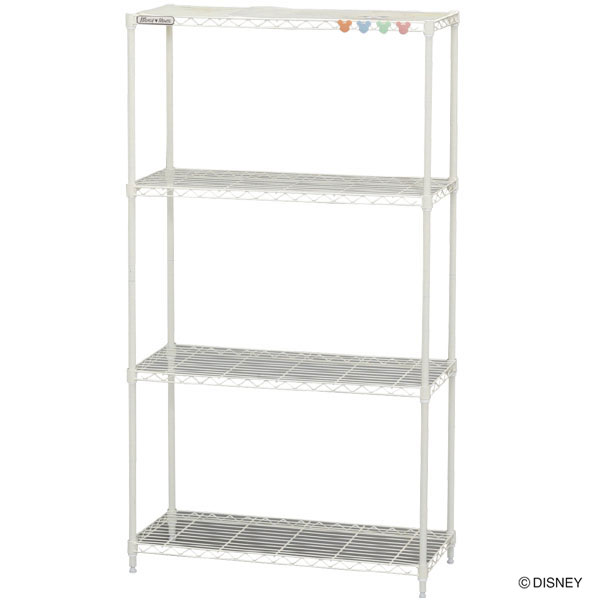 ミッキーのエンブレムとシートが付いた、かわいいカラーメタルラックです。飽きのこない落ち着いたアイボリーカラーなので、お子さまだけでなく大人も楽しめます♪★お客様組立★ネジ・クギ不要の簡単組み立て商品で、ゴソフトハンマーがあれば、すぐに組み立てられます。●商品サイズ(cm)幅約80×奥行約35×高さ約146(アジャスター含む)●耐荷重棚板1枚あたり約30kg、全体約100kg●棚板4枚●主要材質棚板・ポール:スチール(エポキシ粉体塗装)固定部品・エンブレム:ABS樹脂クリアシート:ポリプロピレン